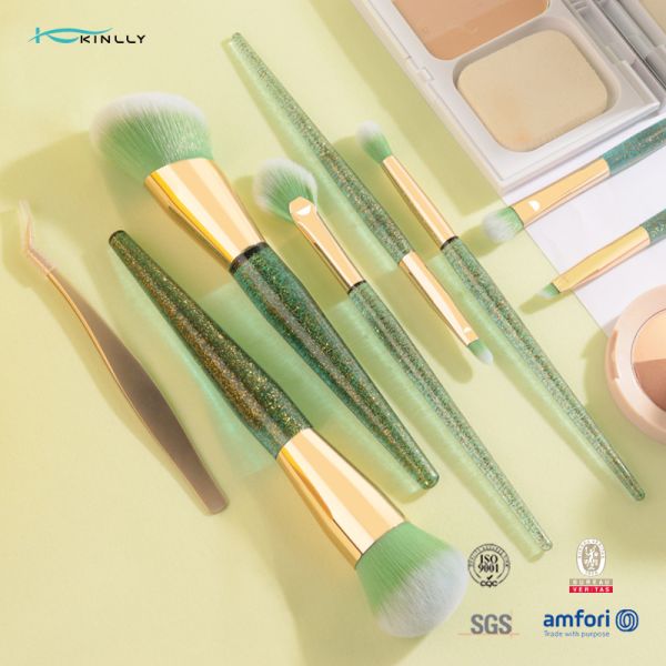 Rhinestone Glitter Crystal Plastic Makeup Brushes OEM Vegan Artist 7pcs Makeup Brush Set Images |
